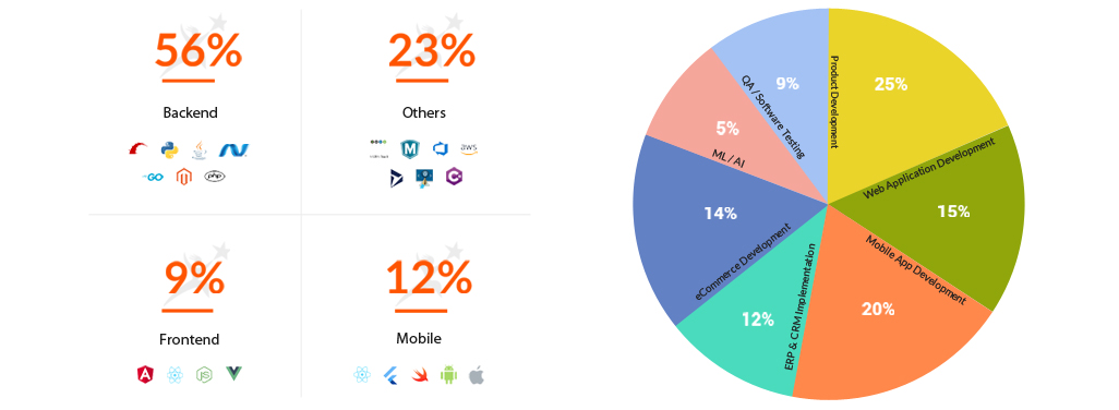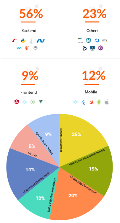 Project management integrated with best-in-class execution and low-cost global fulfilment helps future- proof your continued growth and success for your business. A pool of 1000+ vetted and certified developers in 40+ skill stacks.